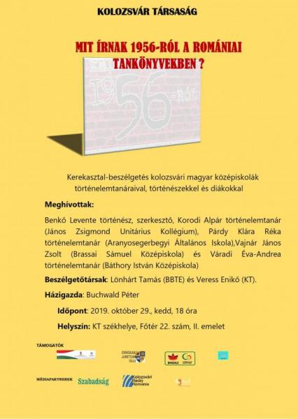 “Mit írnak 1956-ról a romániai tankönyvekben?” címmel kerekasztal-beszélgetésre került sor kolozsvári magyar középiskolák történelemtanáraival, történészekkel és diákokkal.